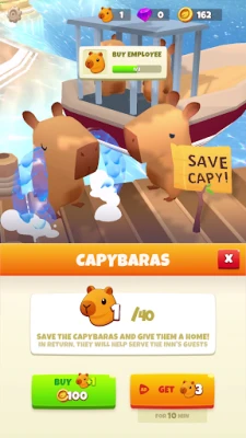 One of the most charming aspects of Paradise Inn is the opportunity to rescue and collect capybaras, each with its own unique personality. Whether it’s a singer, a traveler, a foodie, an artist, or a sleepyhead, these delightful creatures add character to your resort. Collecting and upgrading capybaras not only makes your island cozier but also enhances the overall experience for your guests. The more capybaras you rescue, the more vibrant and lively your resort becomes!