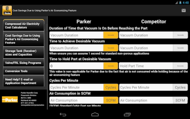 The Parker Pneumatic E-Tools application stands out as a comprehensive solution for engineers, technicians, and anyone involved in pneumatic systems. With its user-friendly interface and powerful features, this app simplifies complex calculations and provides instant access to vital information.