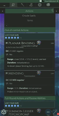 Time is of the essence during gameplay, and the last thing you want is to waste precious moments searching through rulebooks. The character creator offers an intuitive card layout that presents quick reference information regarding your character's skills, effects, and abilities. Each action and spell is displayed as a color-coded card, organized by action duration, making it easy to track your options during gameplay.