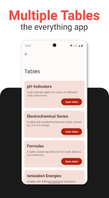 View electrode potentials at a glance with the electrochemical series. Additionally, an inbuilt dictionary enhances your understanding of chemistry and physics terminology, making complex concepts more accessible.