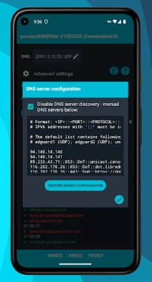personalDNSfilter is not just a filtering app; it also functions as a DNS changer. Users can easily set any upstream DNS server they trust, allowing for greater customization and control over their internet connection. Additionally, the app supports encrypted DNS servers through DNS over HTTPS (DoH) and DNS over TLS (DoT), ensuring that your DNS queries remain private and secure.