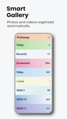PixSweep offers intelligent organization features that help you sort through your media efficiently. Whether it's photos, videos, screenshots, or duplicates, you can easily decide what to keep and what to delete, ensuring your gallery remains organized.