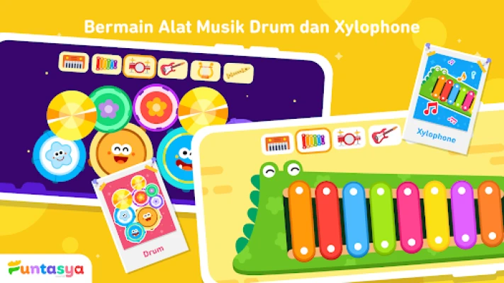 With Yukita Piano & Music Kids Learning, children can freely interact with a variety of musical instruments, including the piano, drums, guitar, xylophone, flute, saxophone, trumpet, and many more. Each instrument features realistic sounds and captivating visuals, enabling children to recognize their names, tones, and functions effortlessly.