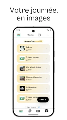 Pictalk Buddy allows users to create personalized tasks using images, videos, or sounds. The app enables the construction of daily routines with pictograms and custom pictures, providing a visual timeline that enhances time management. Users can easily organize morning and evening routines, as well as weekly schedules, with a simple drag-and-drop task ordering feature for effortless customization.