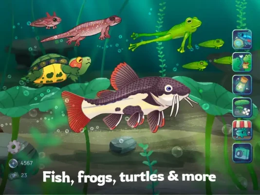 Step into a serene underwater world filled with real species of fish, frogs, and other aquatic creatures. The tranquil gameplay allows you to unwind while exploring the beauty of nature.
