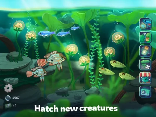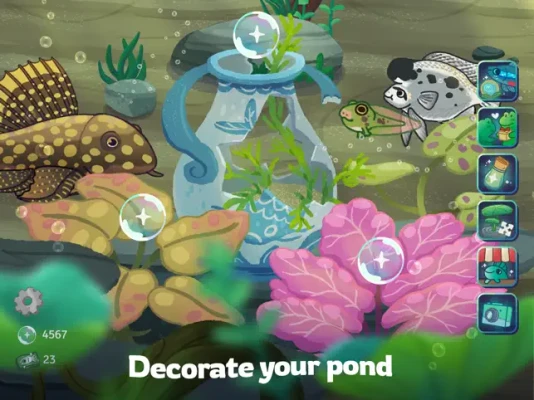 Transform your pond into a stunning freshwater aquarium by collecting and arranging beautiful underwater plants and decorations. Watch as your aquatic haven comes to life, bustling with captivating creatures.