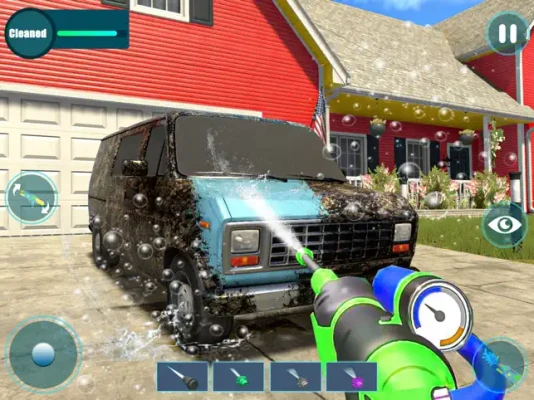 Cleaning muddy cars, trucks, bikes, garages, jets, and ships requires special skills and the right tools. In the Power Washing Simulator, your mission is to respond to customer calls and provide exceptional home cleaning services, earning valuable tips as rewards. Before heading out from the power washing center, ensure you’re equipped with waterproof shoes and the company uniform for promotional purposes. Don’t forget to grab your high-pressure washing jet, drying machine, washing brushes, scrubs, soft cleaning dusters, and cleaning liquid shampoo. With these essential tools, you’ll find it easy to tackle various dirty surfaces and stubborn grease marks.