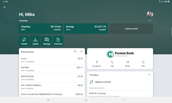 Whether you need to pay a company or send money to a friend, Premier Bank of the South makes it simple. The platform allows you to make payments quickly and securely, ensuring that your transactions are processed without hassle. This feature is perfect for managing bills or splitting expenses with friends.