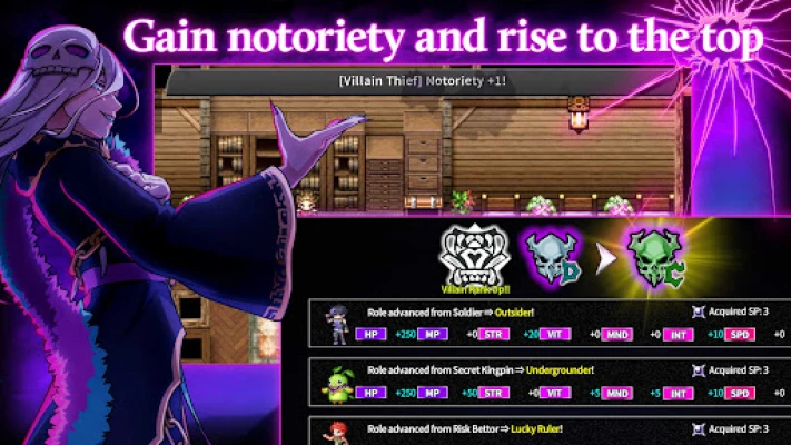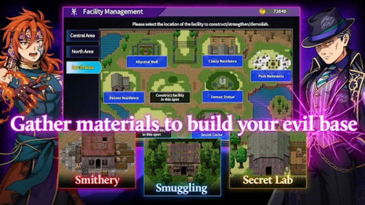 The game world is rich with dungeons waiting to be explored. Each dungeon is filled with challenges, treasures, and resources that are essential for your journey. As you delve deeper into these dark realms, you will gather materials that can be used to develop your own evil base. This base can be customized with various facilities, including a smithery, lab, and smuggling operations, allowing you to enhance your gameplay and create a stronghold of your own.