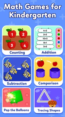The app features a wide range of mathematical games, from simple counting exercises to more complex games that teach addition and subtraction. Each game is designed to captivate young minds and make learning feel like play.