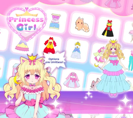 Add a touch of flair with a variety of beautiful accessories. From trendy necklaces to flowing skirts, you can mix and match items to create one-of-a-kind princess designs. Best of all, all items are unlocked, giving you complete freedom to express your style!