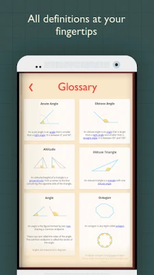 Pythagorea encompasses more than 25 subjects, each designed to stimulate your mind and imagination. Whether you are a beginner or someone looking to refresh your knowledge, this app provides a comprehensive exploration of geometric concepts. With over 70 geometric terms included in the glossary, you can easily access definitions and deepen your understanding of the subject matter.