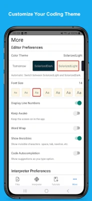 - Custom Themes & Fonts: Personalize your coding environment with a variety of themes and typefaces to suit your style.