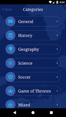 Our quiz app features seven distinct categories to keep your brain engaged: