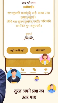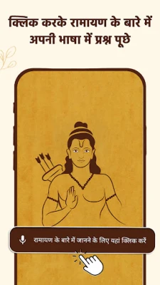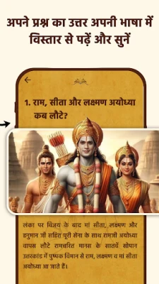 Engage with Ramayan AI by asking questions about the epic's characters, events, and teachings. The app provides detailed explanations and insights, allowing you to deepen your understanding of this timeless narrative.