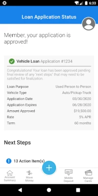 Applying for a loan? Stay updated on your loan application status directly through the app. You can check for any outstanding items needed to complete your application, ensuring a smooth and transparent process.