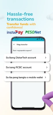 - Transfer funds for as low as Php 8 (free for DiskarTech to DiskarTech and RCBC to DiskarTech transactions).