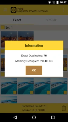 One of the standout features of this application is its ability to display the amount of memory consumed by duplicate images. This insight helps you understand the impact of duplicates on your device's storage.