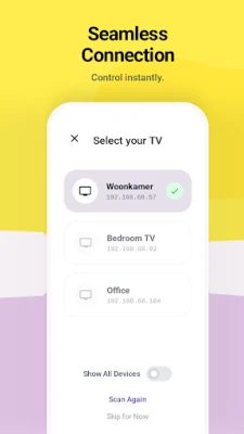 - Wear OS Support & Tile: Control your TV directly from your wrist. This app includes a dedicated Wear OS Tile, allowing you to access essential remote functions quickly without needing to open the main app on your watch.