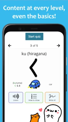 Learning Japanese doesn't have to be a chore. With Renshuu's charming mascot, Kao-chan, the process becomes enjoyable and relaxing. As you engage with the material, you can earn collectible coins for each quiz you complete, watch your character evolve with your progress, unlock manga pages, and explore hundreds of hand-drawn illustrations. These elements make learning not only effective but also fun.