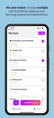 Learning is often more enjoyable when done together. Repeet enables you to share your custom flashcard sets with friends, classmates, or study groups. This collaborative approach keeps you motivated and engaged in your language learning journey.