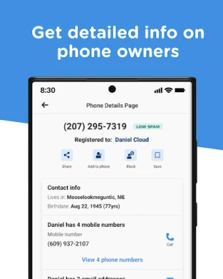 With the reverse phone lookup functionality, you can quickly reveal the identity of unknown callers. The app provides additional information on cell numbers and Caller ID, allowing you to: