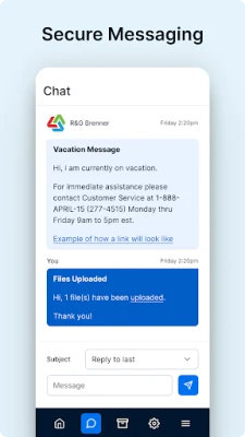 Worried about the safety of your sensitive tax documents? RGB TaxApp offers a secure document transfer system that allows you to upload files or snap photos of your tax documents with ease. All documents are transmitted securely to your tax professional, ensuring that your personal information remains confidential and protected throughout the process.
