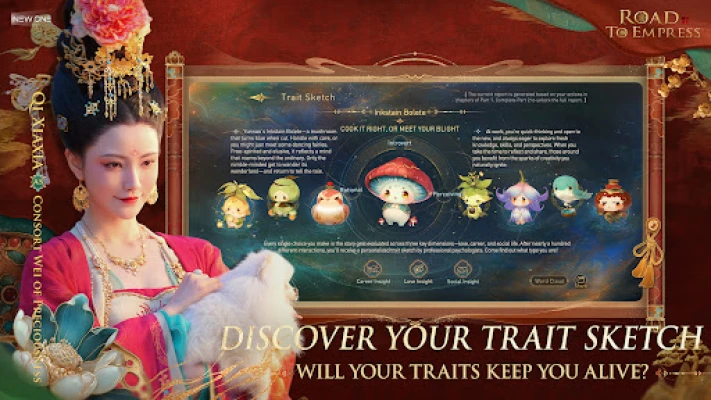With over 8 hours of cinematic content, no two playthroughs of "Road to Empress" are the same. Your choices not only alter the storyline but also define your character's identity. Earn a personalized Trait Sketch based on your decisions, collect exquisite traditional artifacts, unlock hidden narratives, and participate in global popularity contests to crown your favorite characters. The possibilities are endless!