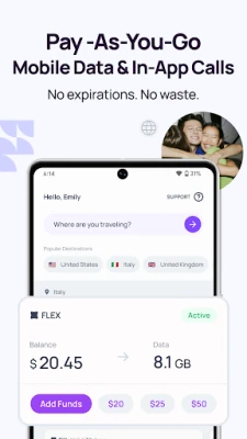 - Data + Voice in One App: Enjoy mobile internet and international in-app calling with a single wallet.