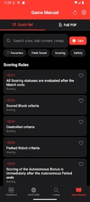 Users can access the game manual via a web view, along with a quick reference guide, making it easier to understand the rules and regulations of each competition.