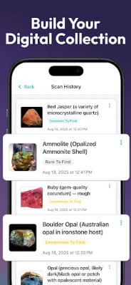 Every discovery is a cherished memory. With the Rock and Mineral Identifier, you can save each scan to your personal digital collection. Track your finds, add custom notes and photos, and create a stunning log of your geological adventures. This feature makes our app an essential tool for hobbyists looking to organize their collections effectively.