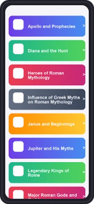 Our app stands out in the crowded field of educational tools by combining fun and functionality. With a variety of features tailored to enhance your learning journey, you can immerse yourself in the rich narratives and characters of Roman mythology while testing your knowledge.