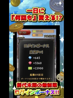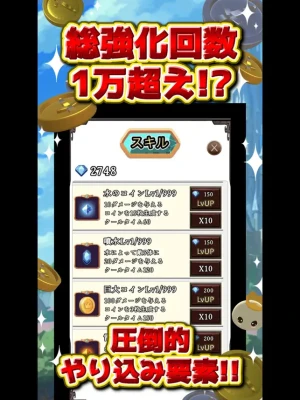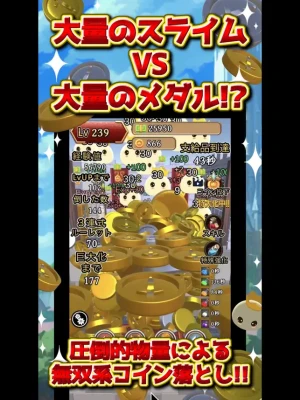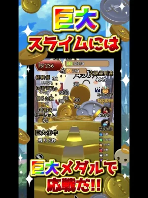Every minute, coins cascade from above, presenting you with opportunities to collect rewards. These rewards enhance your gameplay, allowing you to boost your attack power and increase the drop rates of gold and silver medals. With these enhancements, you can deliver devastating blows to slimes and other adversaries!