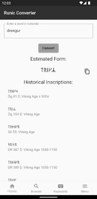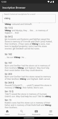 Looking for inspiration? Our app includes the Rundata browser, a powerful tool that allows you to search through a vast database of historical inscriptions. Discover the rich heritage of runes by exploring ancient artifacts, stones, and manuscripts that showcase the beauty and complexity of these symbols. This feature not only enhances your understanding of runes but also sparks creativity in your writing.