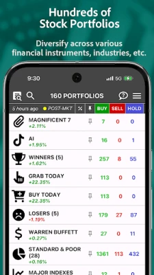 The App makes it easy to search and find great S&P 1,500 stocks to buy, follow your favorite stocks, and understand the market. View charts, stock quotes, and daily performance in a personalized watchlist. S&P 1,500 stocks include all S&P 500 Large Cap, S&P 400 Mid Cap, and S&P 600 Small Cap stocks. Tap any ticker to see key fundamentals and technicals, company profiles, and business news from top publications around the world. This App updates its Buy and Sell recommendations 3 times a day during the market trading hours. Know when and which stocks to Buy and Sell and at what price. It is a great tool for Day Traders, Swing trading, Scalping, and Long Term investing with extremely accurate and verifiable recommendations and alerts.