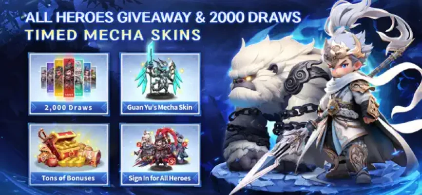 New players are greeted with a wealth of bonuses, including 2,000 draws that guarantee custom S+ heroes. This generous starting package allows you to gather limited weapons, beasts, skins, and gold, setting you up for success right from the beginning!