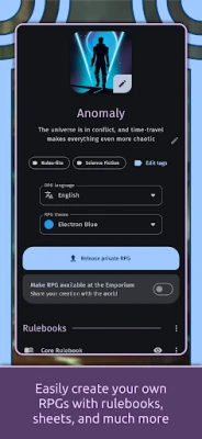 Samwise empowers you with a powerful and user-friendly editor that allows you to craft custom sheets, rulebooks, characters, classes, and much more—all without needing to write a single line of code. If you prefer to jump straight into the action, explore the Emporium, where you can download a variety of RPGs and supplements from the community, including popular systems like Dungeons & Dragons and Fate.