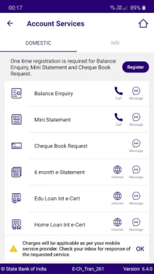 - SMS charges apply for functionalities like BAL, MSTMT, REG, DREG, CAR, HOME, and HELP, based on your mobile tariff plan.