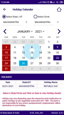 Stay informed about bank holidays with the SBI Holiday Calendar feature.