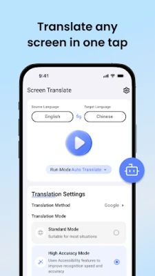 The app utilizes the AccessibilityService API solely when translation is manually triggered. This allows it to extract visible text from other apps and provide accurate translations. This permission is only required for High-Precision Mode and Ultra-Fast Mode. Rest assured, your personal information, passwords, and typed content are not collected, stored, or shared. The app fully complies with Google Play’s Accessibility and User Data policies.