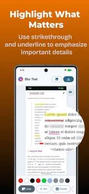 Utilizing advanced AI technology, the app automatically detects text within your images. With just a tap, you can blur, redact, highlight, underline, or strike through any text, ensuring your sensitive information remains private.