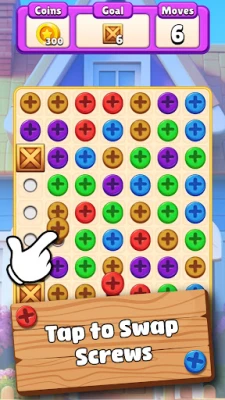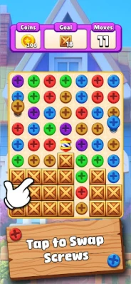 - Swap to Create Matches: Begin by swapping any two adjacent screws to form a match of three or more. This action will clear the matched items from the board and earn you points.