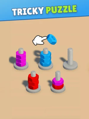Step into a world of brain-teasing challenges with a mobile game that masterfully combines screw puzzles, nuts and bolts challenges, and vibrant color sorting. Each level presents a unique test of your screw puzzle skills, where you will match and fit intricate nuts and bolts, stimulating your strategic thinking and problem-solving abilities.