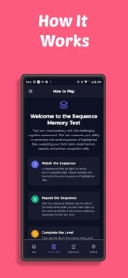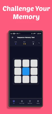 In today's fast-paced world, enhancing cognitive abilities is more important than ever. The Sequence Memory Test app is designed to challenge and improve your short-term memory, visual perception, and concentration. This engaging brain game presents a series of flashing tiles that you must replicate in the correct order. As you progress, the sequences become longer, pushing your mental limits and sharpening your focus. Whether you're looking to boost cognitive performance, refine your mental skills, or simply enjoy a fun challenge, this scientifically-backed tool puts memory training right at your fingertips.