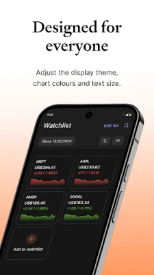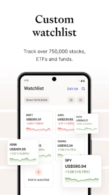 - Custom Watchlist: Tailor your investment tracking by creating a watchlist of stocks that matter most to you. With access to over 500,000 listed stocks, ETFs, and funds, you can easily keep an eye on your preferred investments.