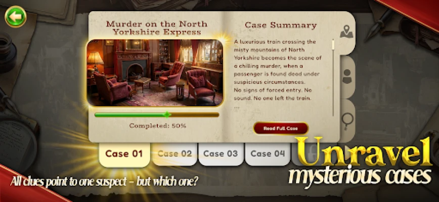 If you have a passion for mystery, logic, and detective adventures, this game is your perfect escape. Feel the thrill of discovery as you spot hidden objects and piece together clues to crack each case. The rewarding progression system allows you to unlock new cases, earn achievements, and showcase your detective prowess.