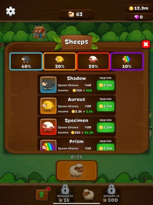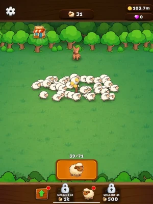 Make your earnings work for you! Upgrade your sheep to produce more wool and increase their value. Enhance your herder's skills to manage a larger flock efficiently. Use your earnings to improve your pens, unlock new pastures, and access special zones. Build new facilities through the SHOP to maximize your profits. Watch your idle income soar as you evolve into a true sheep tycoon!