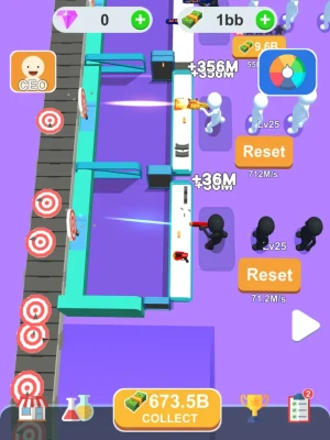 Start with the first shooting target. Attract guests to experience shooting. You can get benefits from it. Upgrade the shooting target with income to give guests a better experience. Then you can buy some new targets to expand your shop. Continuous expansion until you become a shooting field tycoon....