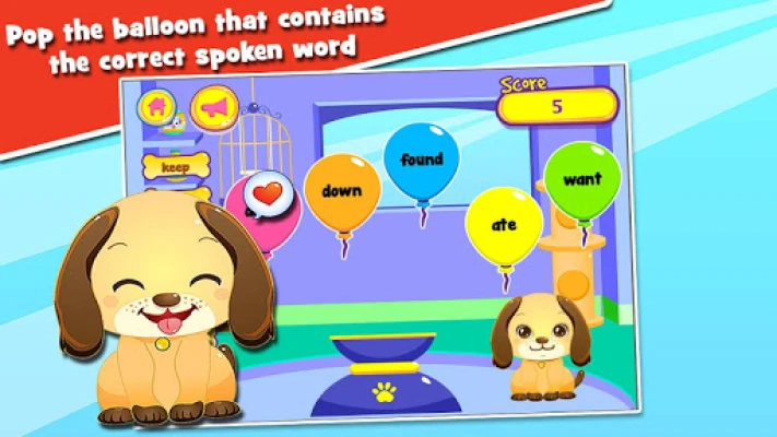In this vibrant game, children pop balloons to select the spoken word displayed. This fun activity helps reinforce word recognition through auditory and visual cues.