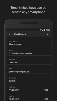 With the MobileKey application, sending Key4Friends authorizations is a seamless process. This feature enables users to share temporary access with friends or family members, ensuring that they can enter your premises when needed. The application allows you to set specific time frames for access, enhancing security while providing flexibility for your guests.